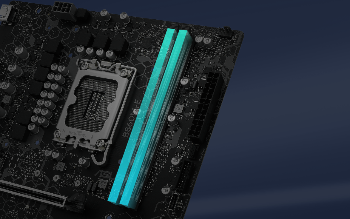 در بخش تغذیه (VRM)، ایسوس طراحی مدار قدرت را با چوکها و ماسفتهای باکیفیت انجام داده تا پایداری سیستم در لودهای طولانی حفظ شود. این موضوع مخصوصاً برای کسانی که مدتزمان طولانی سیستم روشن دارند یا از CPUهای قدرتمند استفاده میکنند اهمیت زیادی دارد.